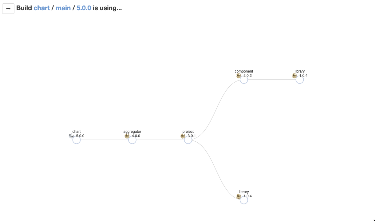 Ontrack is able to track links (dependencies) between builds. Ontrack V4 can use this information in order to display static and dynamic graphs about the state of dependencies between your different components.
